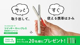 「フィットカットカーブ ツイッギー」は、常に最適な刃の開き角度を保つ“ベルヌーイカーブ刃”によって切れ味を高めた家庭用はさみのNo.1ブランド「フィットカットカーブ」シリーズから誕生。いつでも持ち歩けるコンパクトな「フィットカットカーブ」が欲しいというお客様の声に応えた究極スリムな携帯はさみです。