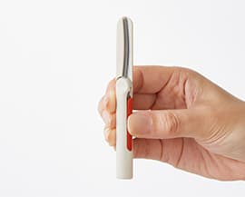 本体は全長108㎜。片手にぴったり収まるコンパクトタイプです。本体カラーはグレージュ、レッド、アイスブルー、ベビーピンク、アイボリー、ブラックの全6色。メーカー希望小売価格は869円(税込)です。