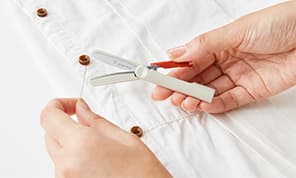 軽い切れ味が特長の"ベルヌーイカーブ刃"を採用。常に最適な刃の開き角度を保ち、刃の根元から先端までどの位置でも対象物をしっかりキャッチ。外出先での服のほつれ糸や、プリント・お菓子袋の開封、洋服のタグなど、さまざまな用途に重宝します。