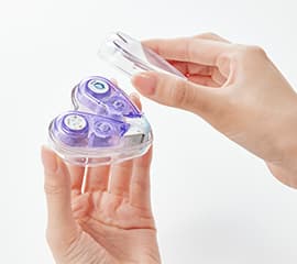 修正テープのようにテープを引くだけでデザイン柄が転写され、手帳、ノート、カードを華やかに飾れるデコレーションテープ「デコラッシュ」。幅広い手帳ユーザーから大変好評をいただいています。今回は、「デコラッシュ」初心者の方でも悩まずに楽しめる2柄セット×3種。「デコラッシュ」の形状をいかし、ぴったり2個収納できるハート型のケースとセットにしました。