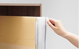 ●半透明で中身が見やすいので、紙芝居の絵柄がひと目で判別できます。さらに紙芝居の紙箱に貼られている“タイトル帯”を切り取って紙芝居と一緒に保管できる、タイトル用のポケット付きです。これによりあらすじ、所要時間、場面数などの作品情報も瞬時に確認できます。表面はキズが目立ちにくいシボ加工です。