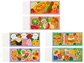 “いつもカドで消す感触”のロングセラー消しゴム「エアイン」の四角い形状がかわいいキャラ弁柄とドリンク柄に変身!