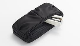 高級筆記具の愛用者が増加中の男子学生をメインターゲットに、男性でも持ちやすいシンプルかつモードなデザインを追求しました。たわみのあるフォルムと生地の美しい光沢がスタイリッシュな印象と重厚な高級感を演出します。