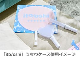 プラスのオフィス家具工場の製造過程で生まれたハギレのほか、折り紙や雑誌の切り抜きなど、さまざまな素材を文様のように貼り合わせたり、思いのままにデザインしてうちわをデコレーション。完成したうちわは、プラス文具「ito/oshi(イトオシ)」シリーズのうちわケースに入れてお持ち帰りいただけます。