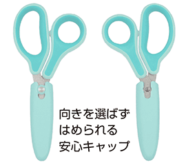 刃先は丸みを帯びた安全な形状で、誤って刃先に触れてもケガをしにくい設計です。表裏を選ばず簡単にはめられる安心キャップ付きで、カバンや道具箱の中で他のものが傷つくのを防止します。