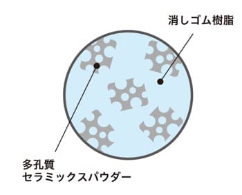 「富士山消しゴム」は、1989年に発売を開始したロングセラー消しゴム「エアイン」と同じ消しゴム樹脂を採用。多孔質セラミックスパウダーが無数のカドを生み出し、“いつもカドで消すような軽く快適な消し心地”を実現しています。