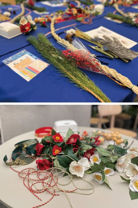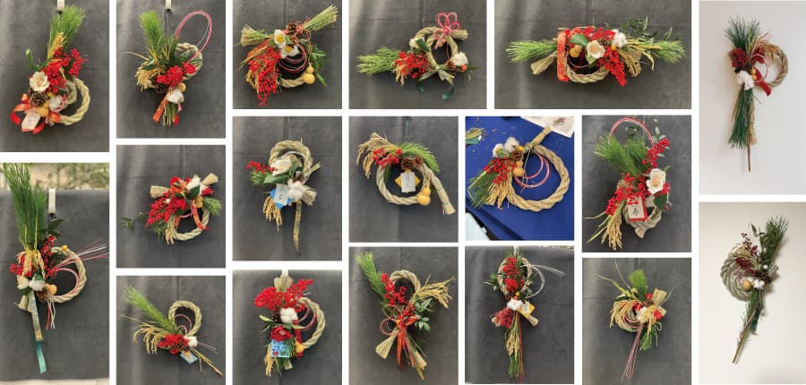 少し難しかったという声もありましたが、ベースのしめ縄の形に悩んだり、松や南天の配置を工夫したりと、同じものは二つとない、それぞれ個性あふれる素敵なお正月飾りを完成させてくださいました。