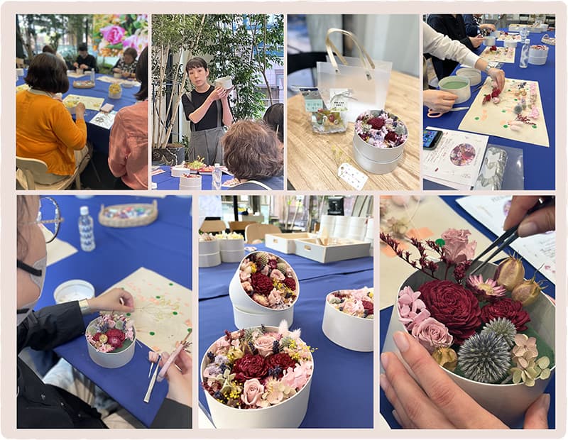 2025年4月30日(水)恵比寿ガーデンプレイス2FのSALONスペースにて、フラワーボックスづくりのワークショップを開催しました。
