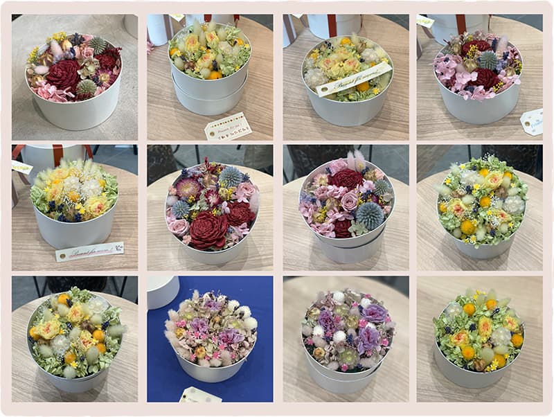 お母様に贈る、いつも支えてくれるご友人に贈る、ご自分へのご褒美として贈る、など、みなさんそれぞれの想いを込めて作っていただけたら素敵だな、との思いから、贈った方に長く楽しんでもらえるよう、ドライフラワーを使ったギフトボックスを作成することに。