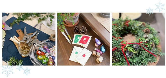 また、リースに添えるクリスマスカードを作成できる材料もご用意します。