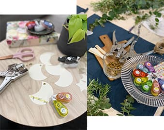 ワークショップ当日は、黄色が鮮やかなミモザから元気をもらい、参加されるみなさんとのおしゃべりを楽しみながら、幸せを感じられる特別な時間にできたら…。おしゃべりがはずむよう、ウェルカムドリンクと、さらに、完成したリースをご自宅で愛でる時間を楽しめるようなちょっとしたお土産もご用意してお待ちしています!