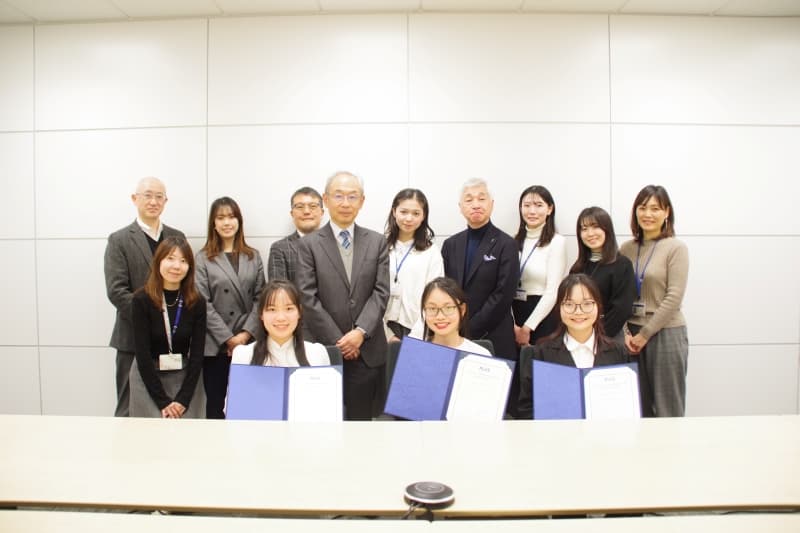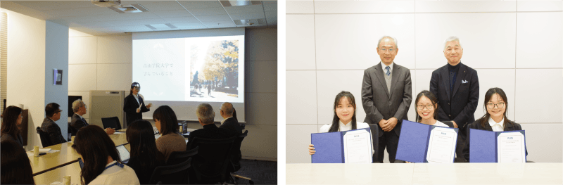 2013年にプラスが青山学院大学との提携により創設した、ベトナムからの留学生を支援する『PLUS・AGUベトナムスカラーシップ』。2024年度は、ハノイ国家大学外国語大学から1名、ホーチミン市人文社会科学大学から2名、計3名の奨学生を決定し、2025年1月28日(火)に虎ノ門本社にて奨学金授与式を行いました。