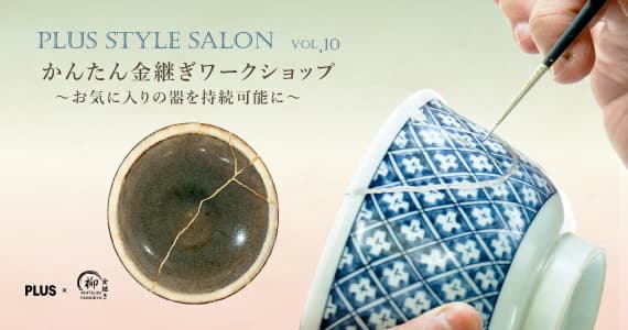 【PLUS STYLE SALON vol.10】キズついてしまった大切な器を、ご自身の手で修復してみませんか?『かんたん金継ぎワークショップ』では、新うるしを用い、お気に入りの器を修復します。現代のサステナビリティに通ずる、日本の「物を大切にする」文化。金継ぎを通して、ぜひご体感ください!