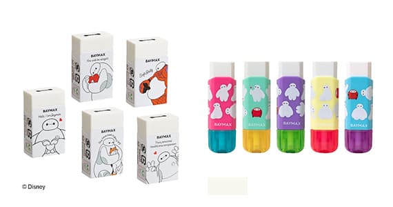 サンスター文具と協業し、ディズニー映画の人気キャラクター「ベイマックス」の限定デザイン消しゴム2種類を発売します。「エアイン<限定>ベイマックスデザイン」は2月24日、「Cluttoくるっと<限定>ベイマックスデザイン」は3月30日販売開始です。
